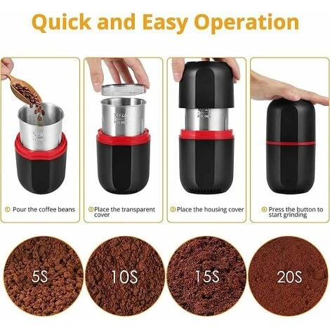 【Powerful & Multifunctional Grinder】With a powerful 150 watt motor and 304 food grade stainless steel double blades, it can quickly grind up to 4.2oz/120g coffee beans in 30 seconds. Not only for grinding grains
