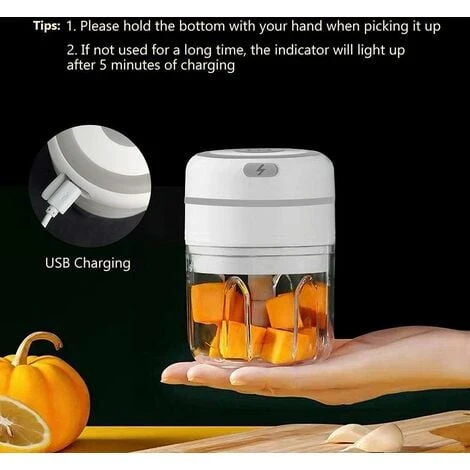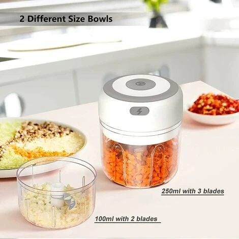 hides no dirt. The electric garlic press has a capacity of 250ML&100ml, which is small and exquisite, small and easy to store. Ideal for home kitchens, outdoor picnics or on the go.