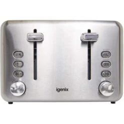 Igenix 4 Slice Toaster, Reheat Function, Slide Out Crumb Tray, Stainless Steel – IG3204