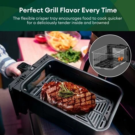 The flexible crisper tray encourages food to cook quicker for deliciously tender inside and browned