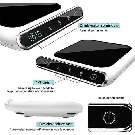 Auto on/off: The coffee cup warmer on the table has a gravity sensor, so after opening, place the cup on the surface of the cup warmer and it will start heating. The cup warmer switches off automatically when the cup is removed. What’s more, there is a reminder to drink water