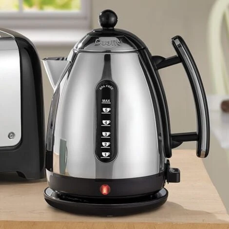 The Dualit Polished Chrome Jug Kettle Black sits on a 360 degree axis base which also has a useful cord storage.