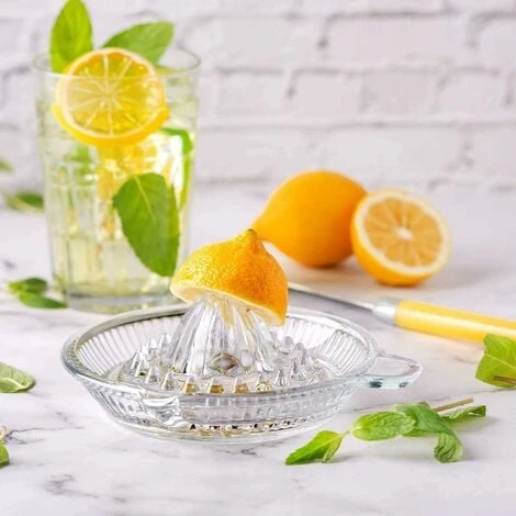 Easy to Use: First cut the fruit in half, and then gently rotate and squeeze the pulp part against the tip of the juicer to squeeze the fruit juice. The small tooth part in the middle can well isolate the squeezed lemon seeds , Especially easy to use, and the glass material is easy to clean.