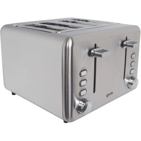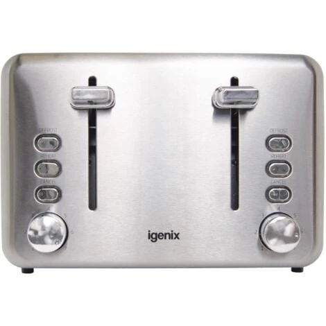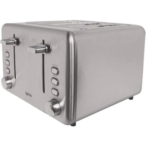 The Igenix IG3204 is a 4 slice toaster. Perfect for a busy family, this stainless steel toaster has 4 toasting slots, as well as variable electronic browning control so everyone can have their toast exactly how they like it. The hi-lift facility means no hazardous fishing for small items such as crumpets, and the self-centering guides mean evenly browned slices every time.