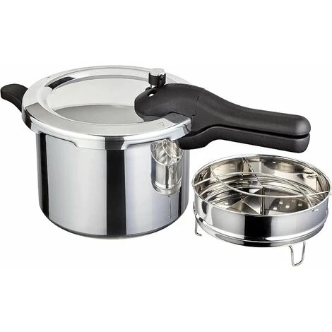 KEY FEATURES:Neat simple valveLow and High pressureQuiet operationCool touch handles and helper handleAutomatic release if over-pressurisedSteaming basket and trivet3-part divider insertSuitable for all kinds of hob except inductionStarter booklet with recipes