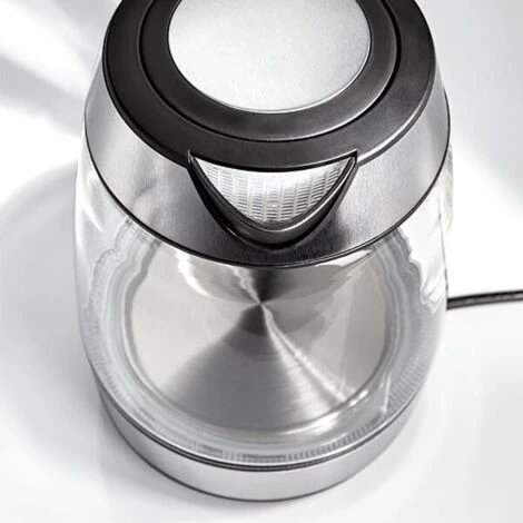 The glass kettle rotates 360° on the base which makes it ideal for both right and left handed use. The concealed element of inside the kettle glows blue when the kettle is switched on and automatically turns off with the kettle when the water is boiled and ready for use.