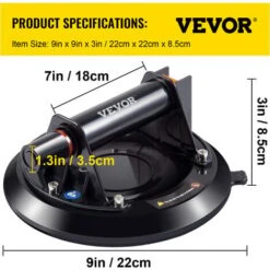 VEVOR Glass Lifting Vacuum Suction Cup, 8” Glass Lifter Suction Cup, 330lbs Load Capacity Glass Lifting Suction Cup, Heavy-Duty Hand-Held Glass Lifter For Moving Large Granite Tile & Replacing Window