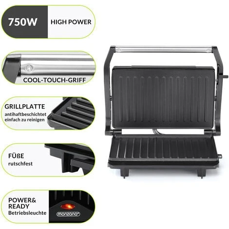With the MZ608 contact grill from the monzana® brand, you can easily and fat-free make delicious sandwiches, burgers or steaks yourself at home.