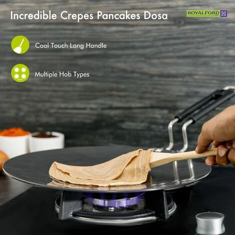 HEALTHY CHOICE, STYLISH DESIGNÂ – Make food healthier with this roti tawa. When using non-stick cookware, you will require less butter or oil for cooking those tasty pancakes, crepes or even chapati’s. This stylish crepe tawa is must have in every kitchen. It will surely add more class and style to your cooking space.