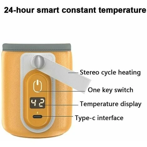 Product Description Material: PU, heat insulation cotton Size: 90mm, 120mm Applicable bottles: suitable for bottles with a diameter of 6.5-7cm Color: bright yellow, bright green Quantity: 1 piece Contents of package: 1 * insulated bottle cover, 1 * USB charging cable 1. Bottle Warmer This bottle warmer heats quickly and evenly, can be stretched to fit most bottles, easy and safe to use. Applicable bottles: suitable for bottles with a diameter of 6.5-7 cm. The velcro at the back can be adjusted to fit more bottles. 2. Portable and compact design Small and compact for easy portability and storage. The perfect solution for parents to warm the bottle comfortably, safely and easily while driving. 3. Sandwich insulation design Sandwich structure heat insulation design, heat preservation and fire treatment of heating core ensure safety. The multi-layer material process is safe and secure. The outer layer of the protective cover is made of high-quality PU, which is soft and skin-friendly, and the heating layer keeps you warm for a long time. 4. USB charging: Comes with a USB cable, just plug the cable into a power bank, car USB port or laptop port. The additional pocket of the milk warmer can be placed with a mobile power supply, so that you can heat milk anytime, anywhere. 5. Suitable for different materials The portable travel bottle warmer is suitable for heating multiple materials, which can heat plastic, glass and stainless steel respectively. During the heating process, the surface of the portable baby bottle warmer will not be hot, and the temperature will automatically enter the insulation mode when the temperature reaches 42℃, and support 24 hours of continuous insulation.