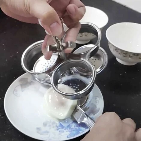 Crack an egg gently into each cup, cook until desired, then lift the poacher out of the pan. Pull the spring-loaded handle to release the eggs onto the plate, toast, or buns.