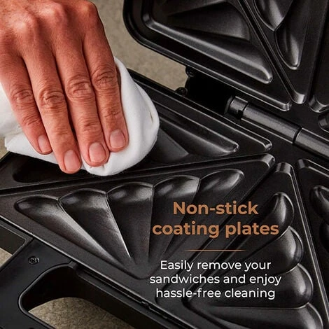 Power on and Ready-to-Go indicator lights take the guesswork out of when your sandwich is cooked whilst the automatic temperature control allows evenly distributed heat for consistent cooking. Cool touch handles and a locking catch provide additional safety when in use.