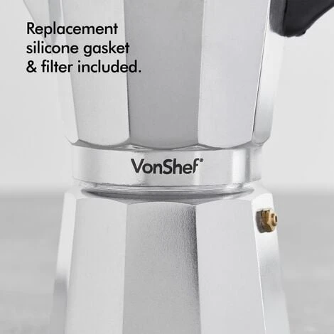 Take a continental approach to coffee and filter up to 6 cups (300ml) of rich espresso with the VonShef Espresso Macchinetta.